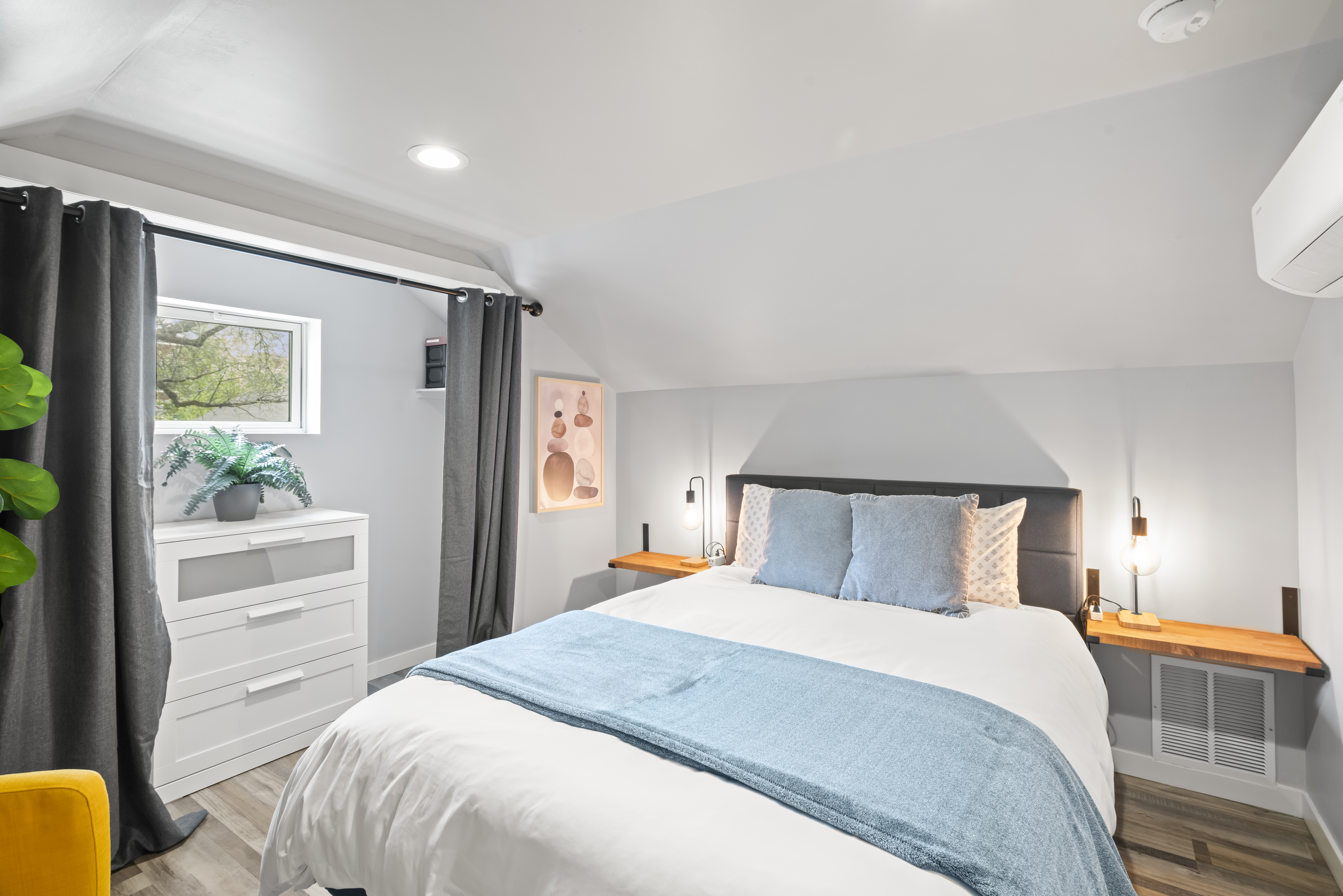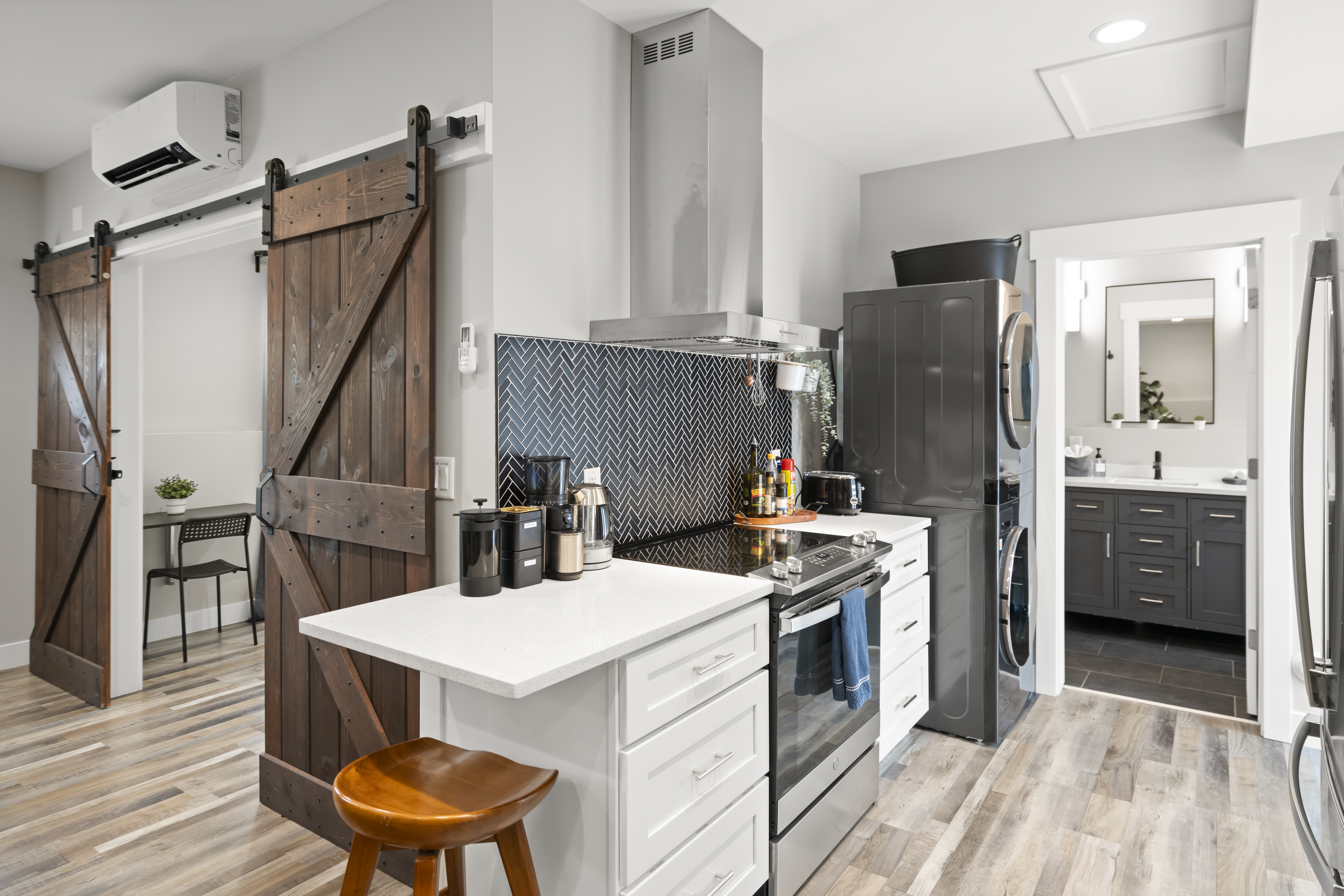 Rest peacefully in one of two elegantly appointed bedrooms, each designed for ultimate comfort and relaxation. Featuring luxury mattresses, fresh high-end linens, and thoughtfully curated décor, every room offers a serene retreat after a day of adventure. Whether you're unwinding in a spacious king suite or settling into a cozy guest room, you'll wake up refreshed and ready to enjoy your stay.